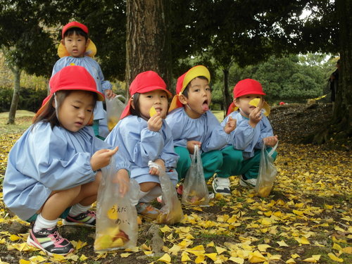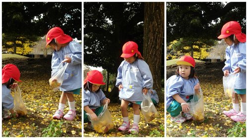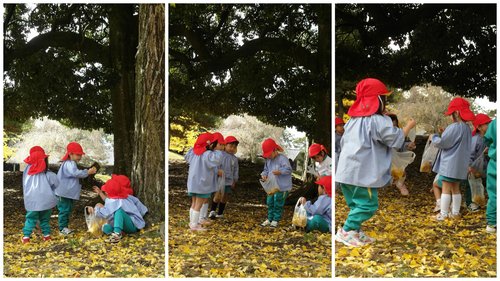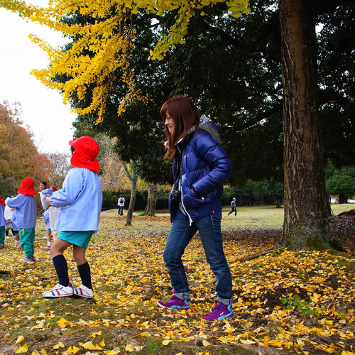 發現排隊的鹿群,其實是被撿銀杏果的小人們給吸引,一陣狂拍到相機電池沒電耶。