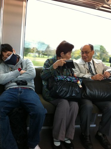 Day3是個多雲偶晴的天氣預報,早上在飯店簡單吃了神戸屋麵包跟牛奶,還有一定要灌杯發泡錠,迅速打包行李寄放櫃檯,拿出關西周遊券繼續操!先搭地鐵到難波,換近鐵電車到奈良~非常自愛的阿晡帶著雙層口罩呼呼大睡中...旁邊的歐吉桑跟歐巴桑聊的超起勁