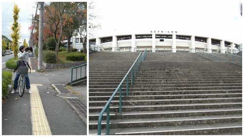 在[奈良レンタサイクル]借了自行車,沿著やすらぎの道一路往北騎沿著,經過鴻池運動公園,這公園應該有棒球場、體育館等等。