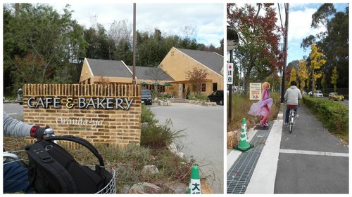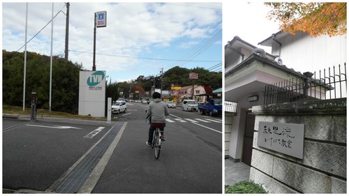 其實應該在遇到奈良電視台就該右轉的,但不走回頭路硬著頭皮繼續走,過了高爾夫球場的紅綠燈才右轉彎進小巷。天呀!竟然是個大上坡,我發狠埋頭苦騎了一段,回頭看到阿晡早就下馬用牽的了,途經一間好野人的插花教室~好酷阿!