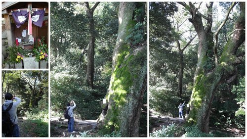 感覺這神社可能是因為這棵超巨大樟樹而來的,純粹小捷胡亂猜測低~哈哈!一開始看有巨大樟樹的指標,往神社後面走遠遠看到一棵大概我就可以環抱的樹,心理想說我念的新庄國小,樟樹都比你大好幾倍好嘛,接近剛被我嘲笑的那棵樹時,被右手邊這深邃的場景給嚇到了,好像是有樹精存在耶!有古冰涼的仙氣(寒氣)吹來~~~難怪起雞皮疙瘩!