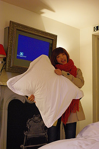 小到不行的房間,沒有一個空間給浪費到~檯燈、鬧鐘、假壁爐、偽裝的冰箱櫃..還有超讚的沙發跟超好睡的大床^^