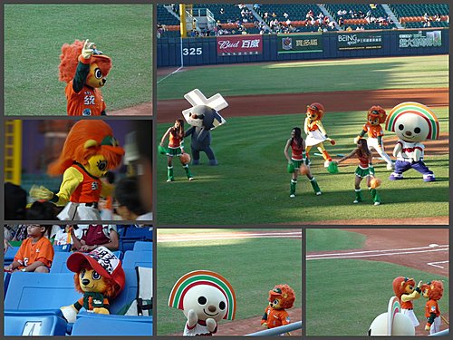 從體育館散步到棒球場,才發現這個公園超...大耶,裡面有網球場、溜冰場、大草地...,突然覺得住在這裡也太幸福了吧。統一的主場當然少不了OPEN將、LOCK將、萊恩及盈盈的表演嚕,萊恩及盈盈還要上演恩愛戲碼~整理頭毛耶,有戲喔!