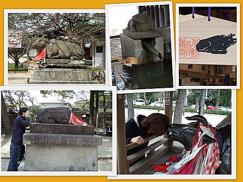 天滿宮在日本全國各地也都有其分宮,像京都錦市場的錦天滿宮應該就是,而北野天滿宮的地位,就像在宜蘭的道教總廟唄!天滿宮的信仰中心~牛!~據說能消災解厄治百病,小晡跟我就各自請神牛幫忙治治隱疾吧~神牛!神牛!請救救我這不靈光的腦袋吧!
