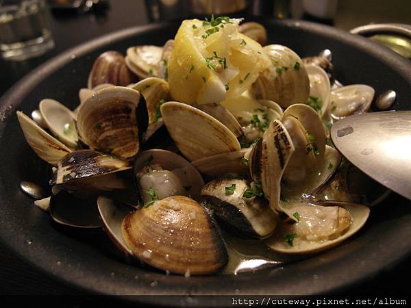 就是這道劉同學跟我驚為天人的檸檬蛤蠣,原先以為不就海鮮攤的炒蛤蠣?!真是大錯特錯,讓我們一直在研究,到底要怎麼煮出這個味道,真是百思不得其解!