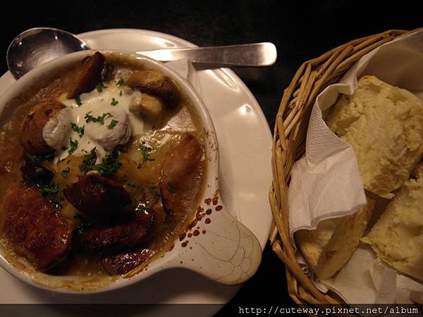 再來就是私房菜來著!焗烤蘑菇...看似濃郁膩口,實則滑順好入口,如果麵包更鬆軟一點就更棒惹(太挑~~~)