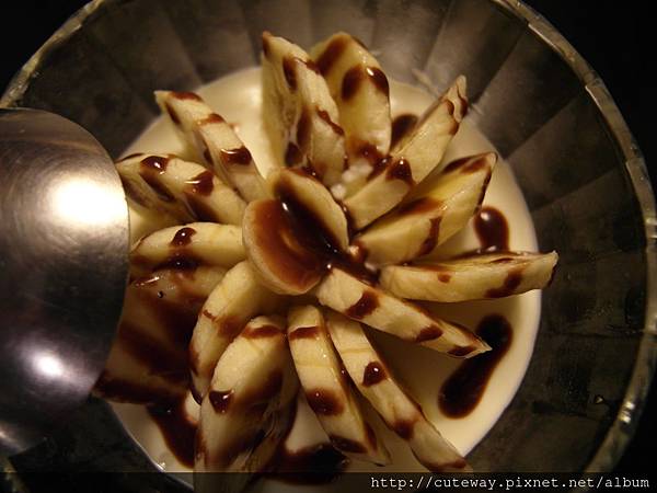 最後的甜點[香蕉奶酪],拍起來好像一大盆的樣子XD...不知道最近是否換菜單了!有機會還想再去吃。