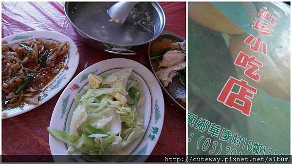 挑了一間"山珍小吃店"點了2人套餐,飢腸轆轆的兩人,覺得好好吃啊!尤其是山豬肉、清蒸魚跟高麗菜,這湯就太過清淡(還是忘了放鹽?)