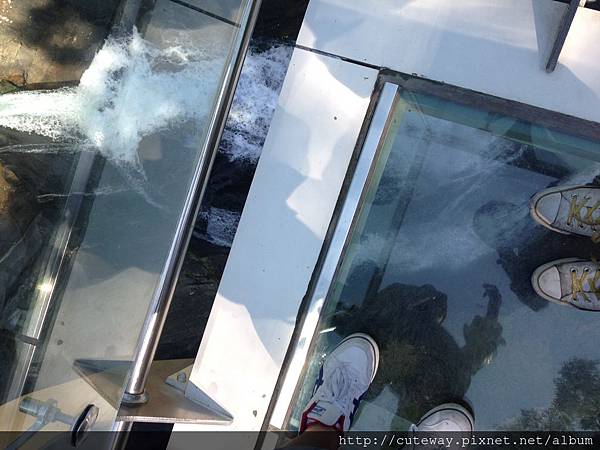 最大的賣點就是這個可透視瀑布的透明橋面。一直覺得哪裡怪?瀑布怎麼這麼小?印象中的小烏來瀑布氣勢澎湃....我發夢了嗎?!