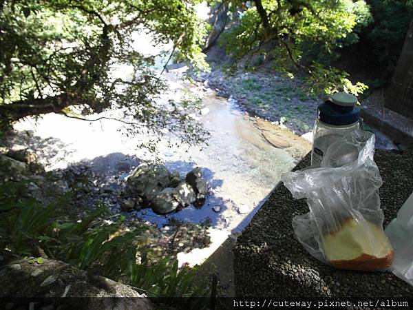 匆匆一瞥就速速撤退,到一旁的橋邊納涼吃自備早餐。