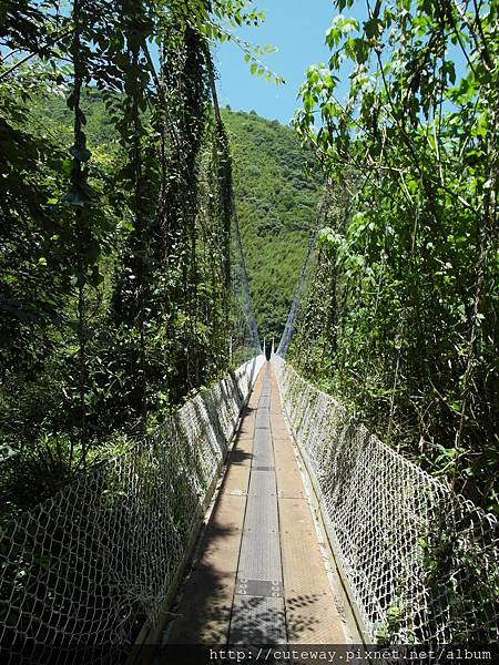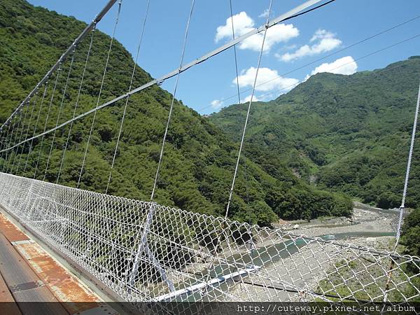 下了一段有窄又陡的斜坡,原來是只能步行通過的吊橋啦XD...糗了!大羊要回頭難度粉高耶!
