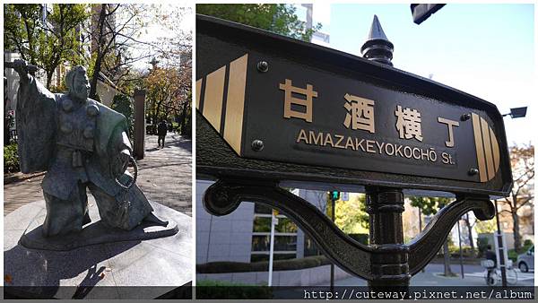 沿著甘酒橫丁往回走,第一個大路口遇到了這雕像,不知啥來頭,但也有出現在新參者耶!
