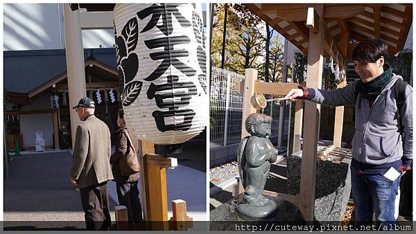 亂走了幾條巷弄,從甘酒橫丁走出來,在盡頭就發現了【水天宮】的蹤影。很常出現新參者劇中的水天宮,滿心期待摸摸那隻保佑安產的狗狗雕像,為幾位懷孕中的好朋友祈福,但居然遍尋不著,該不會沒搬過來吧。反倒是出現了有河童供人祈福。
