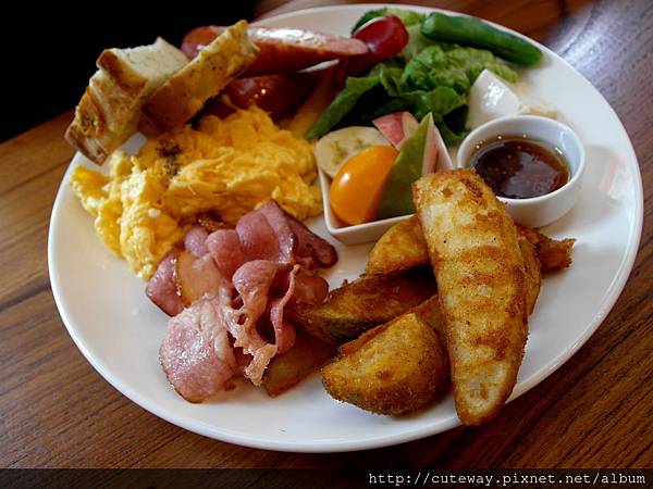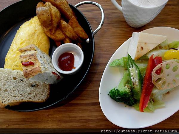 應該是歐姆蛋之類的套餐(敷衍樣),右邊沙拉盤上的那塊小小白嫩豆腐好正點,怎麼可以跟胡麻醬汁這麼搭....