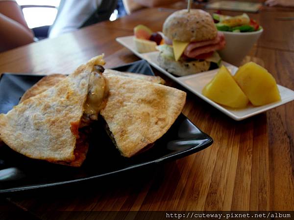 店家夏日新推出的~~~墨西哥餅+小漢堡?林小捷應該是點了這個XD,那墨西哥餅超級正,濃濃的起司香味,讚!搭配了地瓜小點也很妙,小漢堡也好吃。