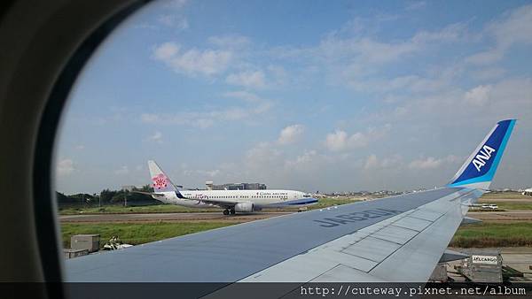 雖然EMAIL上有QRcode可以直接掛行李,但保險起見還是把登記證印出來,不知為何地勤還是重印了登機證給我們。過了海關才想到WIFI機子還沒領,好心的警衛大哥領著我們去找代理全日空的長榮地勤王小姐,王小姐說時間可能來不及喔,心裡想說距離起飛時間還有50分鐘,應該綽綽有餘吧!事情沒這麼簡單滴!首先要申請退關,隨身行李要再過一次檢查輸送帶,然後還要通過警察檢查,看著王小姐不斷寫著各類申請資料,心裡真是感到不好意思,終於完成退關手續,王小姐說還要回櫃檯重新領登機證,再去領WIFI機子,幾乎全程衝刺中。終於都搞定後,還要重新走一次正常通關程序,連聲向王小姐道謝準備進入一般管道十,王小姐突然說跟他走,竟然是走空姐通道耶,其實就是從剛退關的路線,心裡真的感動的不得了,謝謝王小姐的大力幫忙,才能順利搭上飛機,只覺得千萬別再有下次了啦!