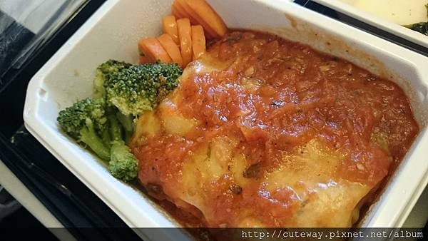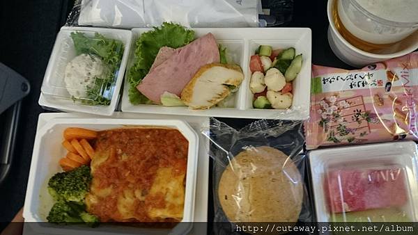 去程的餐點真的很不錯!日式雞肉、義是千層麵,不知是前面地奔波有些精疲力盡,竟然有點吃不下,真是浪費惹!