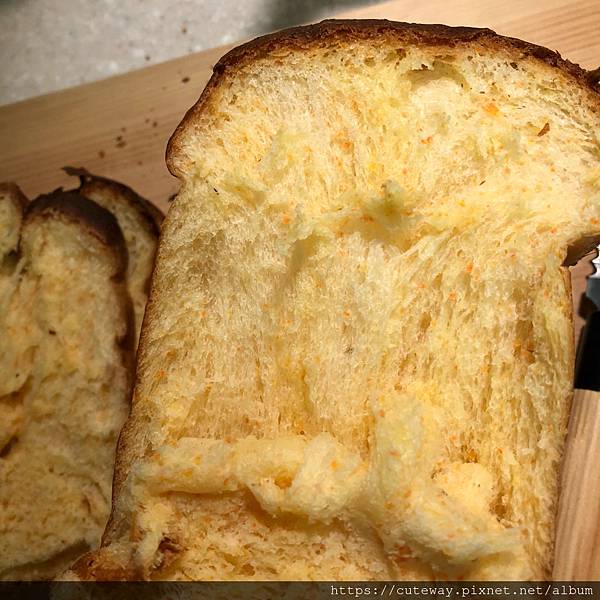 紅蘿蔔為吐司增添了一閃一閃紅星星的淡淡色彩,還有一種含蓄的微甜,很討喜的一款。